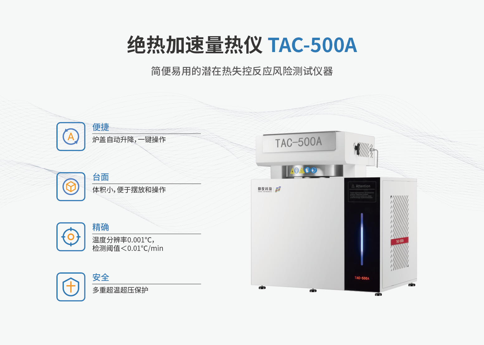 对于强放热类的硝基化合物热危险参数测试,TAC-500A绝热加速量热仪可以实现反应温度实时追踪,绝热温升快速追踪,确保实验安全的同时精确量热。