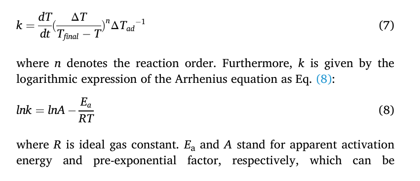 TAC-500A绝热加速量热仪集成了多种反应动力学分析方法。在反应机理模型不明确的情况下,为避免预设模型不匹配带来的误差,可选择等转化率法进行参数拟合;而对于具有明确n级反应动力学方程,则可直接采用速率常数法进行拟合。本研究采用了速率常数法进行计算,结果表明,与单硝基化产物相比,双硝基化产物的分解需要额外的能量来启动。