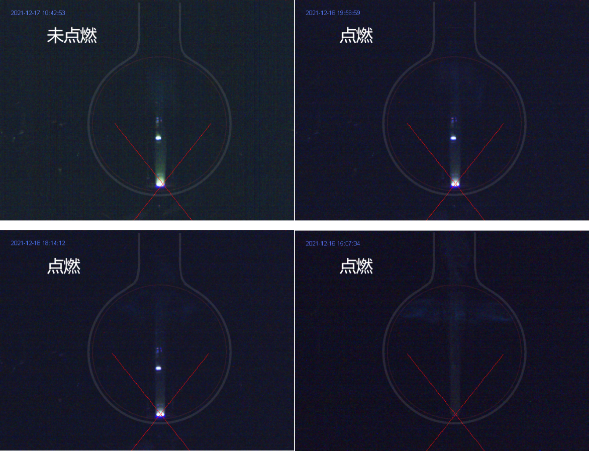 进行爆炸下限测试时,测得最接近火焰传播和火焰不传播时的实验效果如实验录像1所示,可以计算爆炸下限LEL=0.5×(6.526+7.077)%=6.80%。