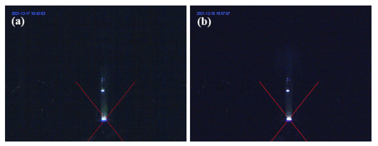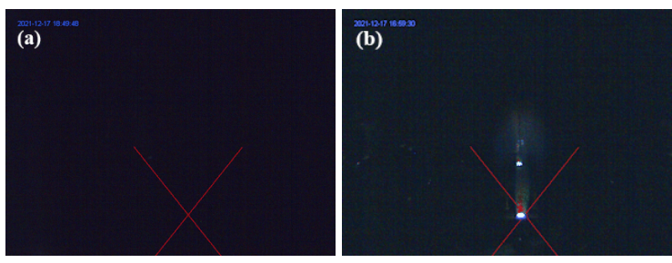 实验录像2 (a) 火焰不传播XTS =41.043%; (b) 火焰传播XTS =40.225%