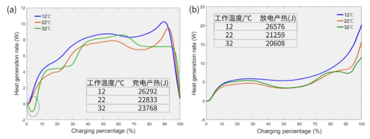 2. 不同温度下电池充放电产热功率