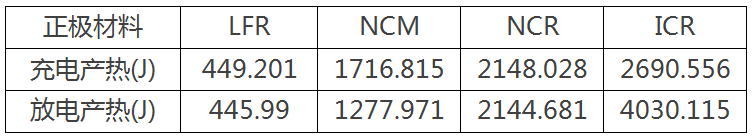 表1 不同正极材料18650电池充放电产热