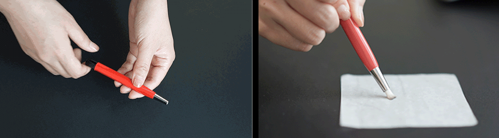 首次使用:第一次打开刷子时,建议将刷毛全部伸出,在光滑的平面上将其轻轻打散。然后将刷毛收回,保留约6毫米的长度。玻璃纤维刷毛的硬度较高,请在使用时保持轻柔的力度;