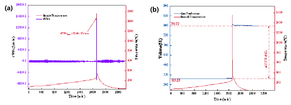 图3 三元九系电池热失控(a)产气速率曲线及(b)产气量曲线