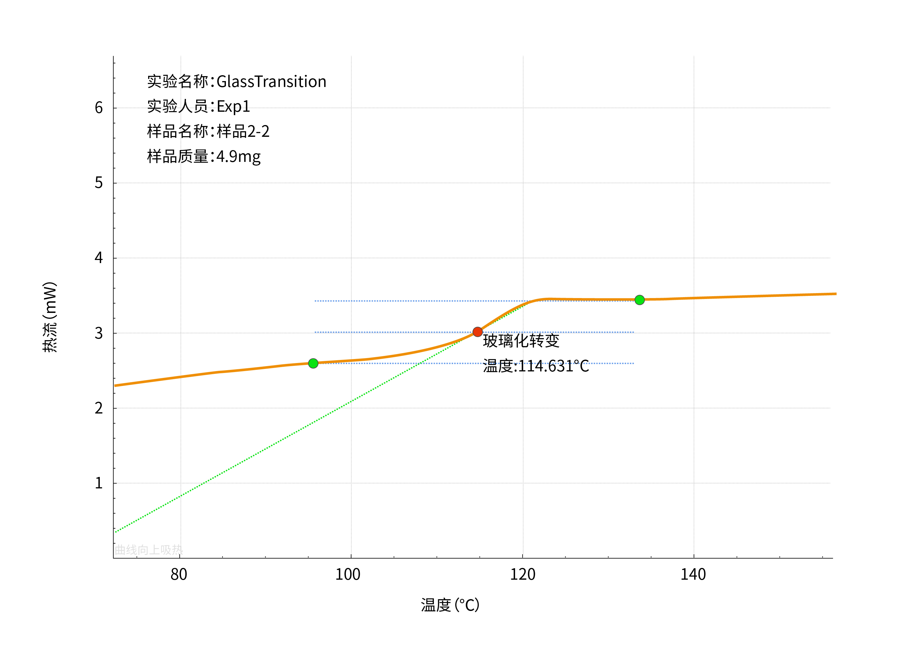 本实验利用差示扫描量热仪DSC-40A测得三种不同医药制剂粉末的玻璃化转变温度。测试结果显示,在经过第一次升温再冷却消除热历史后,第二次测试即可获得典型的玻璃化转变温度测试曲线,#1~3号样品的玻璃化转变温度(Tg)测试结果分别为115.303℃、114.631°C及161.671°C。