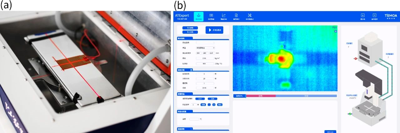 图3 (a) 3D热物性分析仪电池样品安装示意图;(b) 3D热物性分析仪操作软件界面