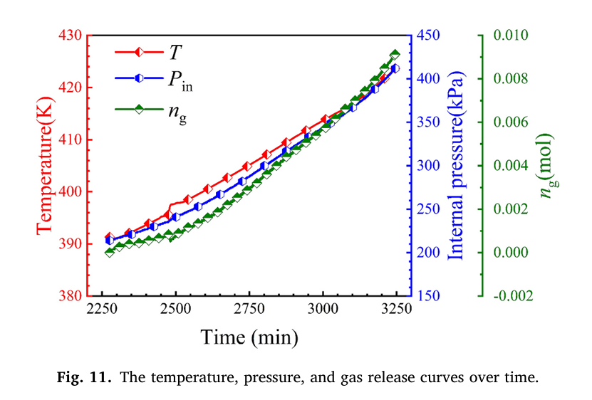 本研究中,团队使用仰仪科技大型电池绝热量热仪BAC-420A,并联用压力传感器、气相色谱仪等设备,针对充满电的300Ah磷酸铁锂电池,对其在热失控过程中的内部压力变化、气体释放情况以及温度变化展开了详细研究。