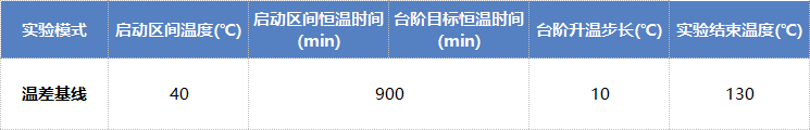 Step4:在操作软件上切换至“实验参数”界面,选择“温差基线”模式,如表1所示设置实验参数;