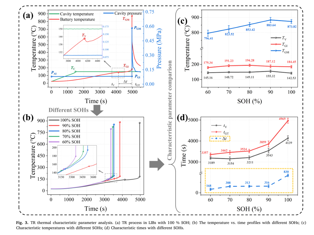 本研究还通过开展不同SOH电池的热失控喷射火行为实验,结合热失控产气参数进行应用场景下的综合特性分析,为储能系统及电动汽车的电池管理系统(BMS)安全设计提供了关键技术指导。