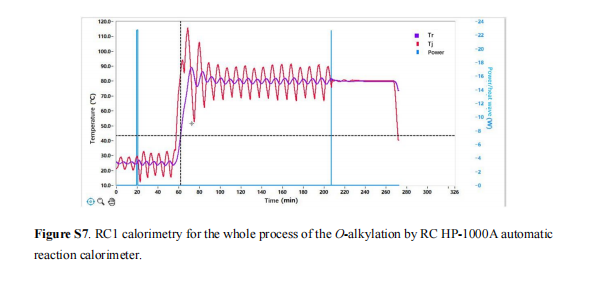 本研究借助仰仪科技RC HP-1000A自动反应量热仪等设备,重点针对GL-V9合成过程中的Elbs氧化与O-烷基化两个关键步骤开展安全评估,有效解决了这两个步骤的热稳定性验证、潜在危害识别及风险管控问题,保障了整个合成路线的安全性与可放大性。